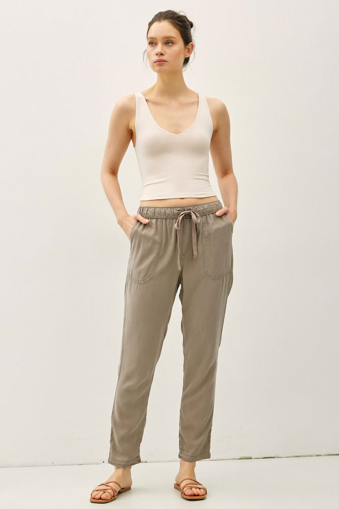 TEXTURED GAUZE ACID WASH WIDE LEG SLACK