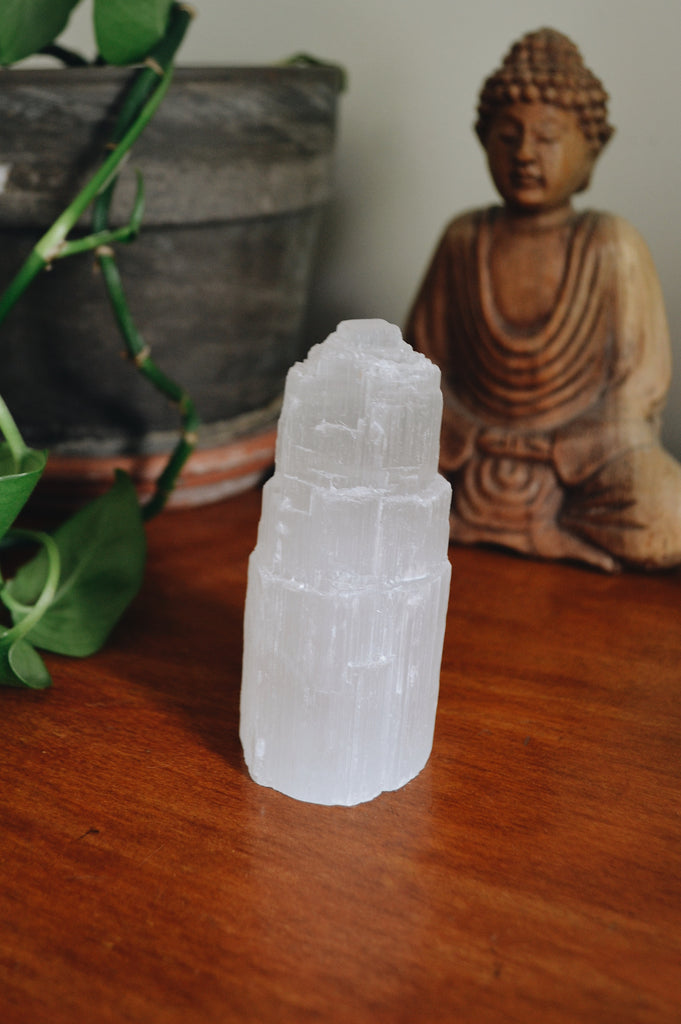 Selenite is the stone of mental clarity. It enhances mental flexibility, enables strong decision making, and removes energy blocks. Place a selenite tower in your space to help clear and protect energy. Looks beautiful as a simple decor piece as well.