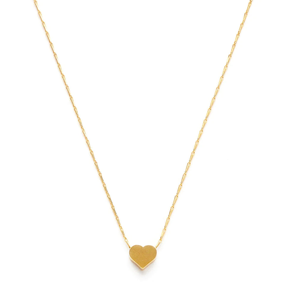 Don't let the diminutive size of this heart fool you. It represents big love. The charm is threaded on an 18" barley chain.14k gold over brass + coated to resist tarnish and creates a hypoallergenic surface. Designed and assembled by Amano Studios in Sonoma California.